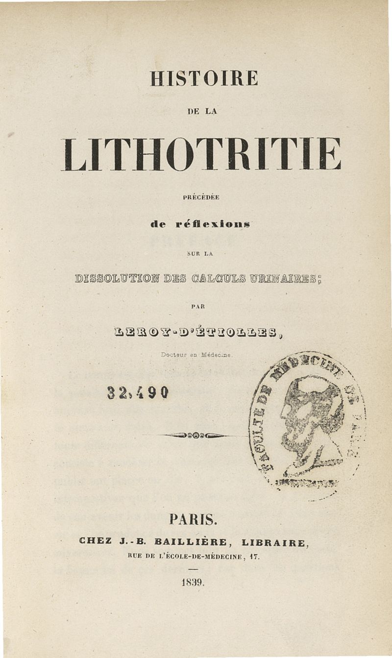 Histoire de la lithotritie précédée de réflexions sur la dissolution des calculs urinaires