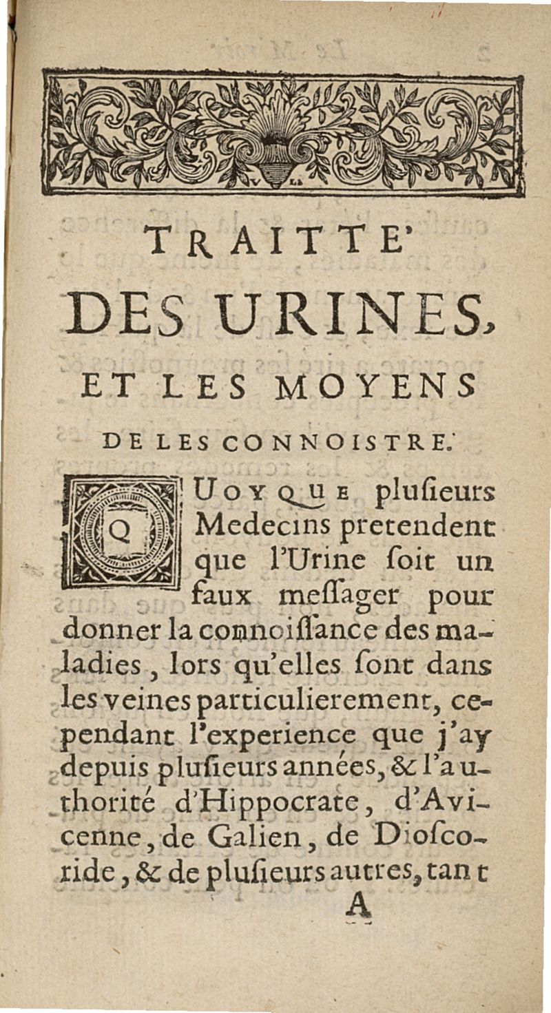 Le Miroir des urines par lesquels on voit & on connoit les différents temperamens..