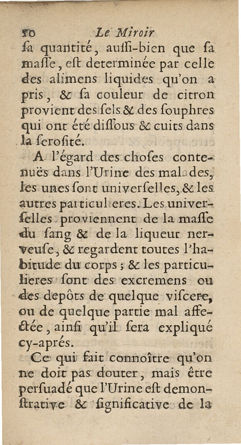 Le Miroir des urines par lesquels on voit & on connoit les différents temperamens..