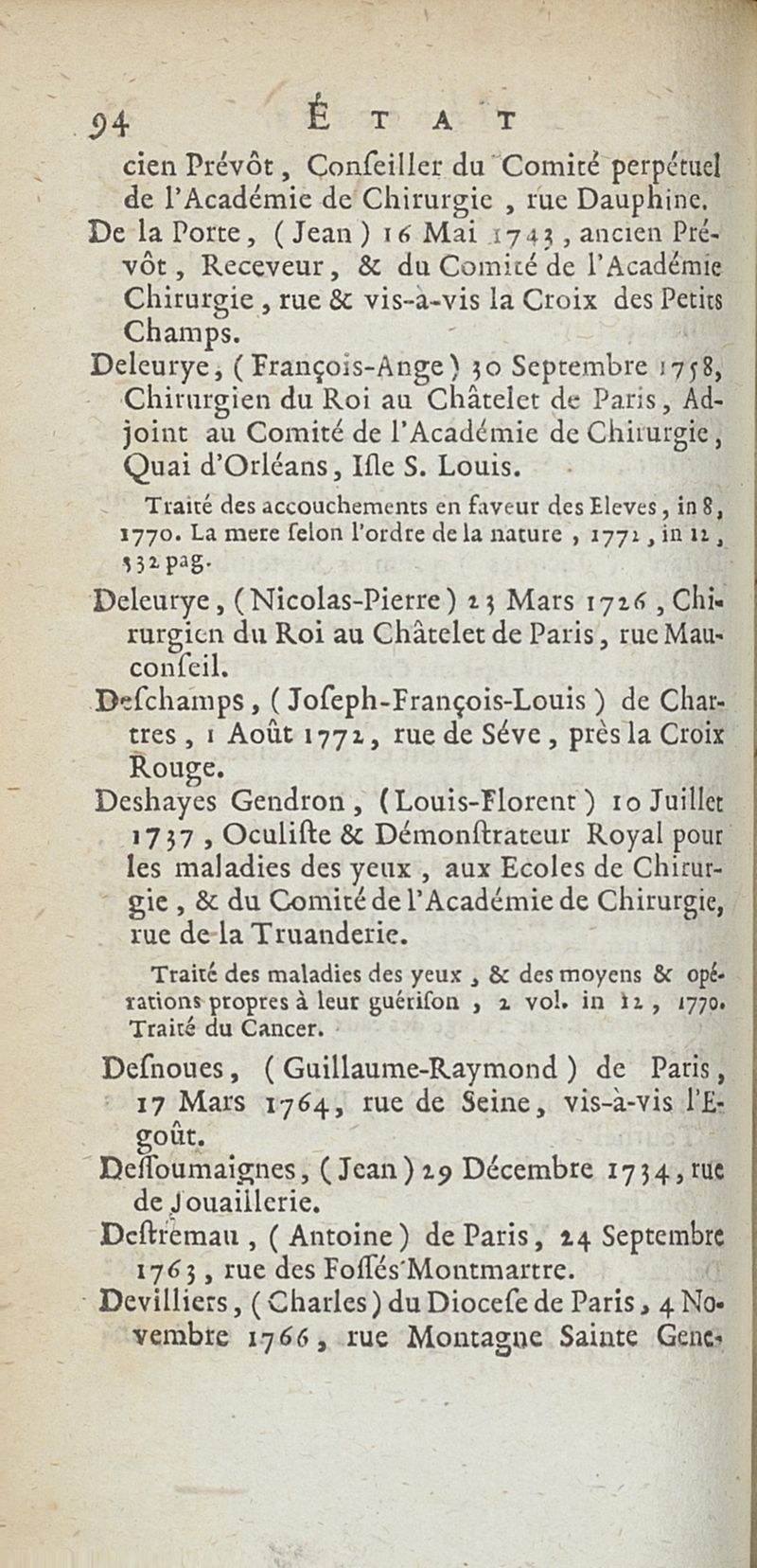 État de médecine, chirurgie et pharmacie, en Europe pour l'année 1776 présenté au Roi