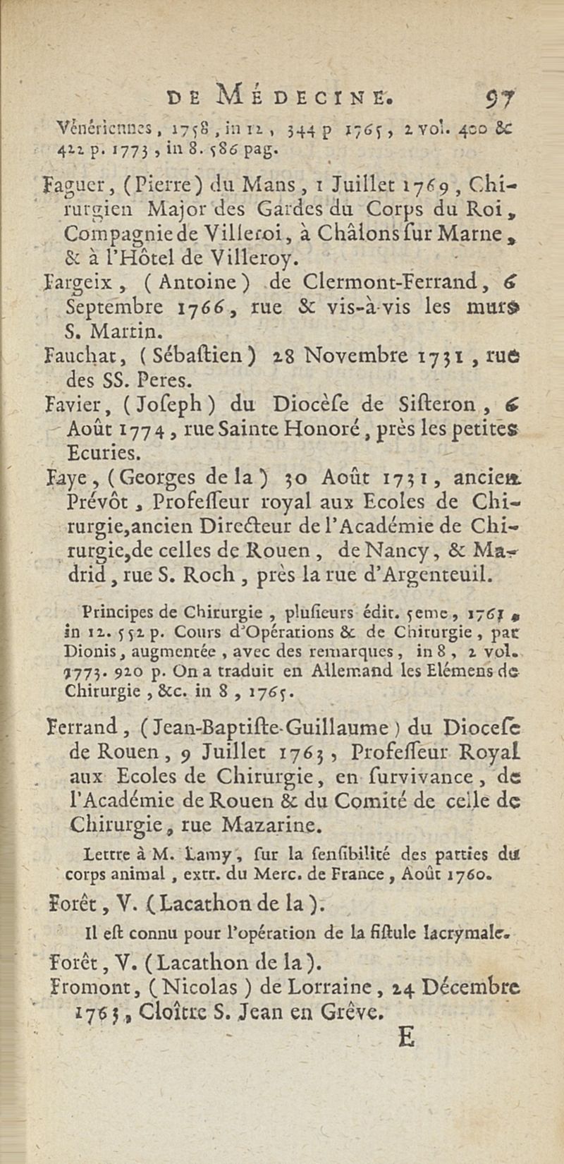 État de médecine, chirurgie et pharmacie, en Europe pour l'année 1776 présenté au Roi