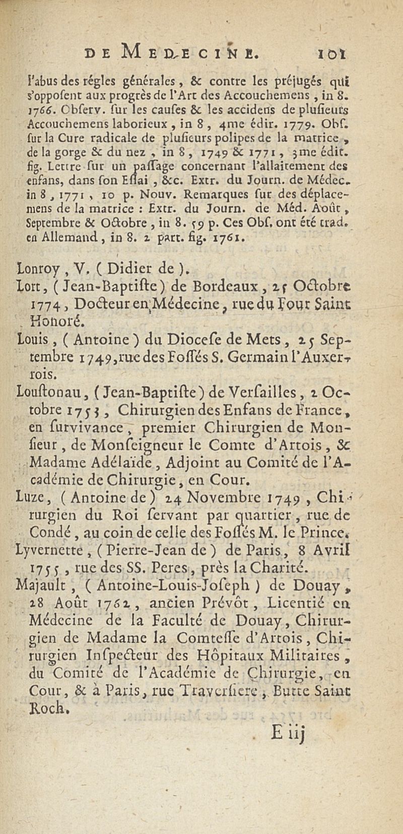 État de médecine, chirurgie et pharmacie, en Europe pour l'année 1776 présenté au Roi