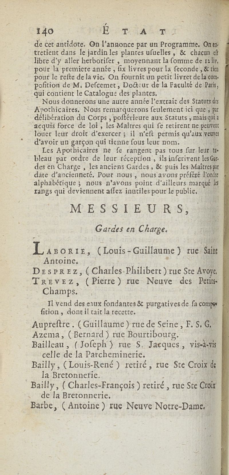 État de médecine, chirurgie et pharmacie, en Europe pour l'année 1776 présenté au Roi