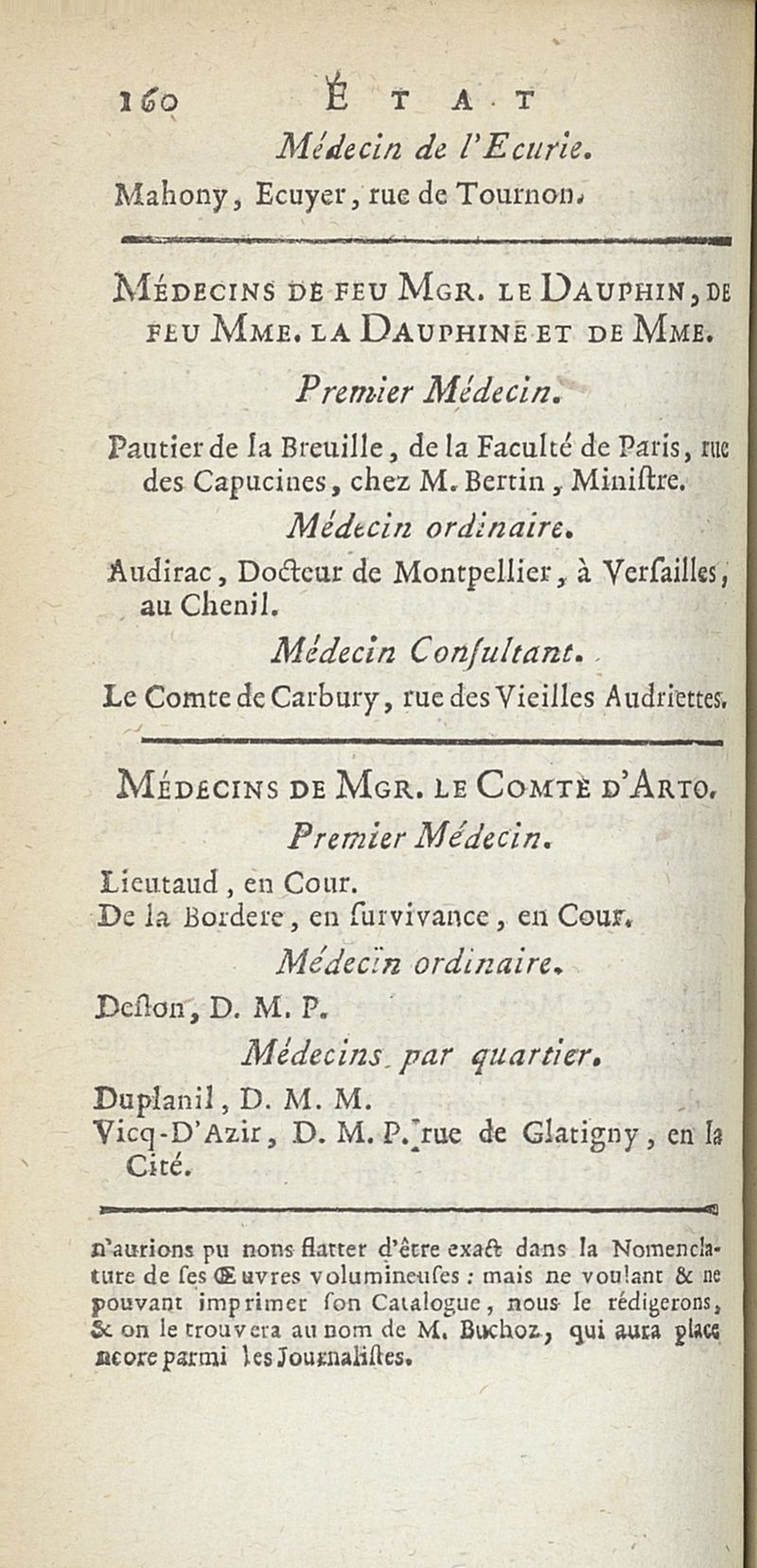État de médecine, chirurgie et pharmacie, en Europe pour l'année 1776 présenté au Roi
