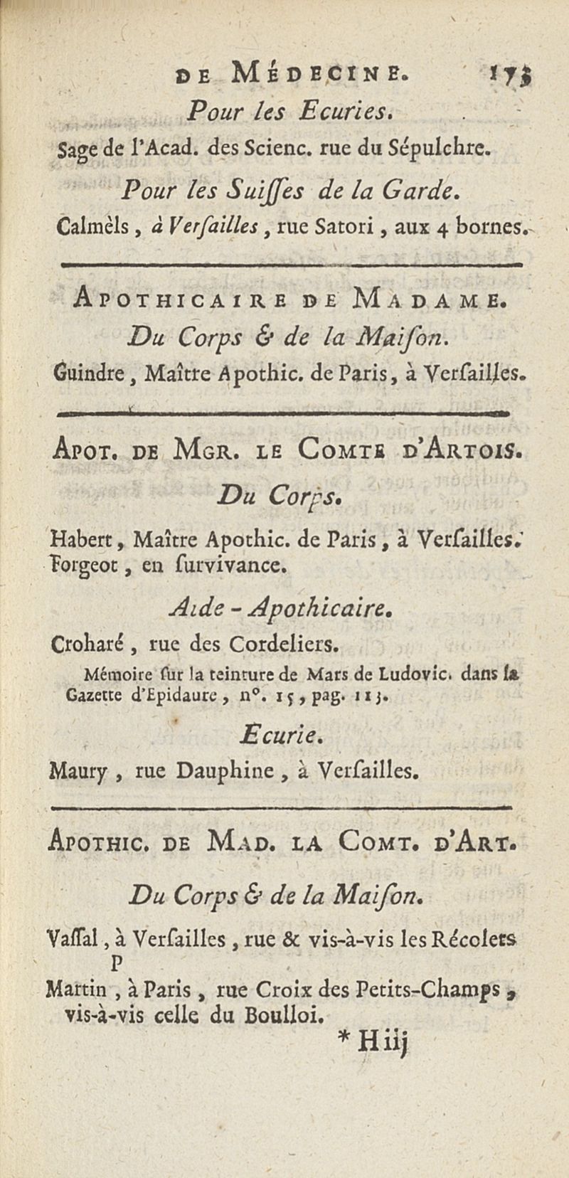 État de médecine, chirurgie et pharmacie, en Europe pour l'année 1776 présenté au Roi