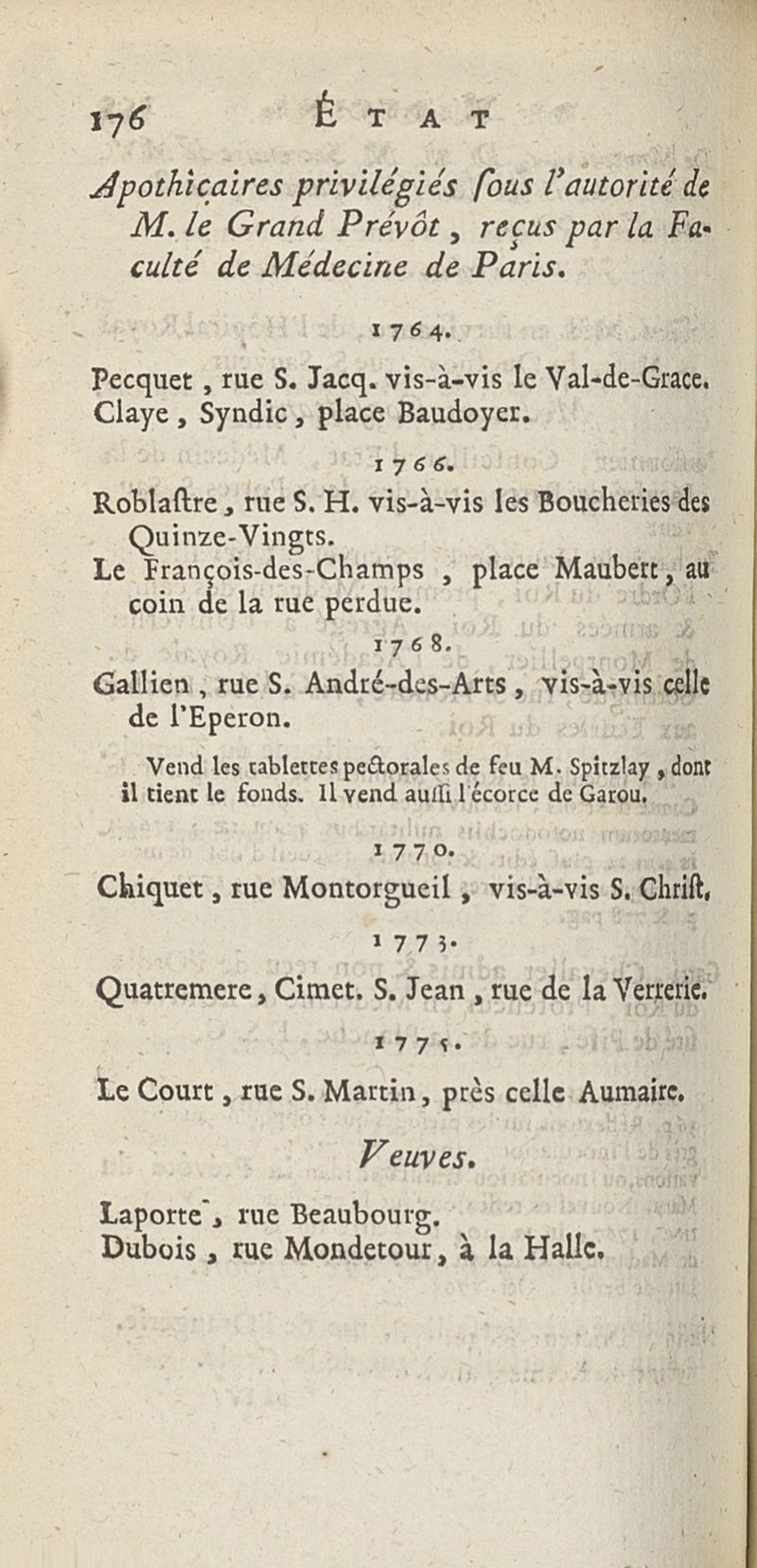 État de médecine, chirurgie et pharmacie, en Europe pour l'année 1776 présenté au Roi