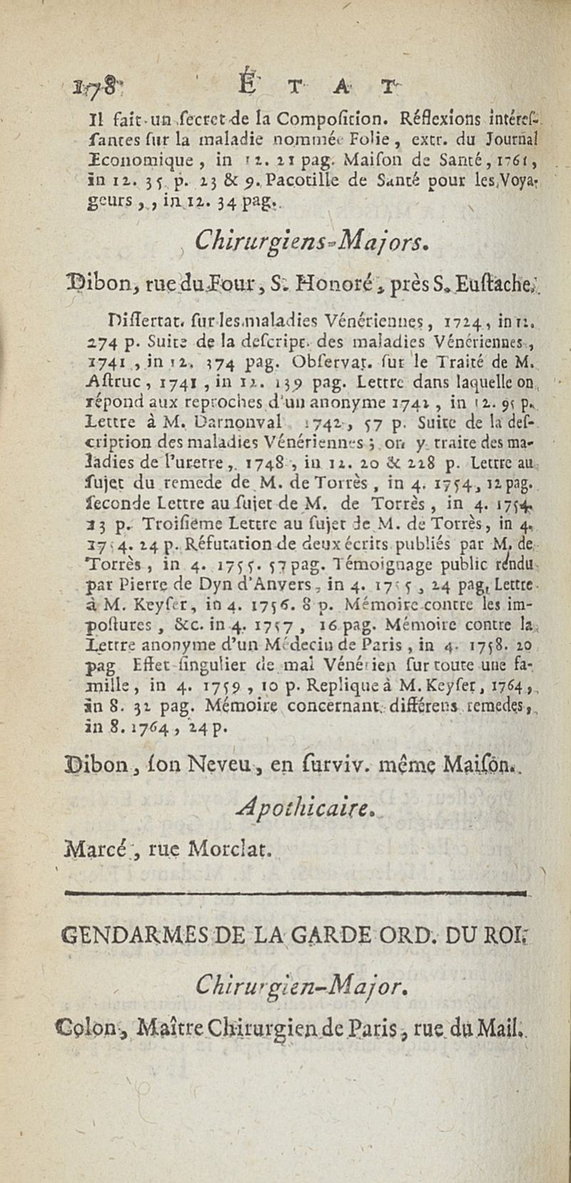 État de médecine, chirurgie et pharmacie, en Europe pour l'année 1776 présenté au Roi