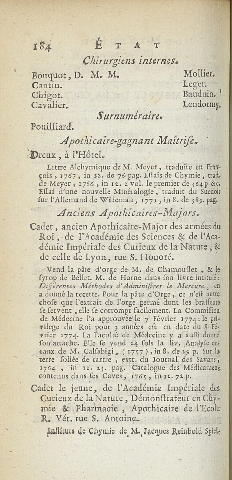 État de médecine, chirurgie et pharmacie, en Europe pour l'année 1776 présenté au Roi