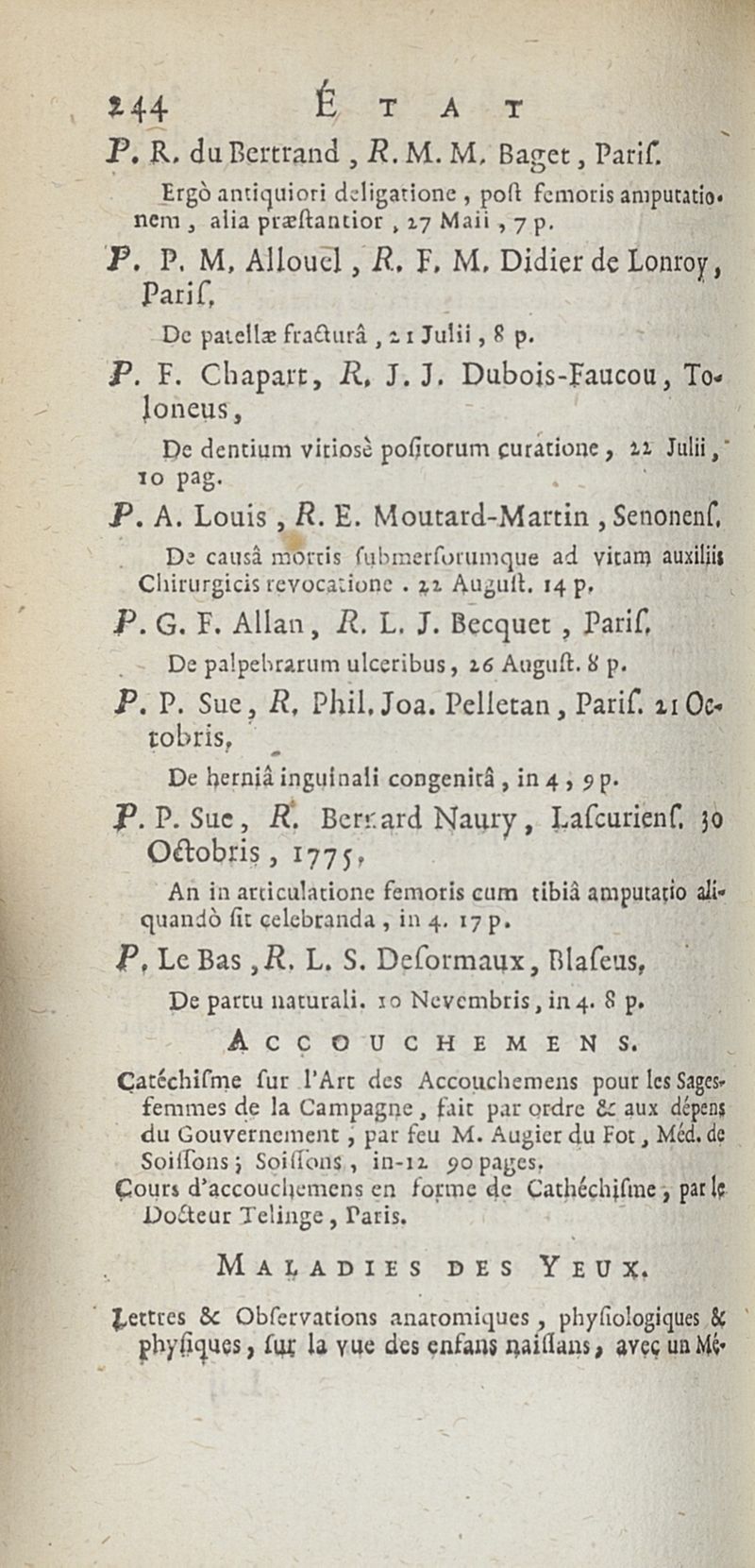 État de médecine, chirurgie et pharmacie, en Europe pour l'année 1776 présenté au Roi