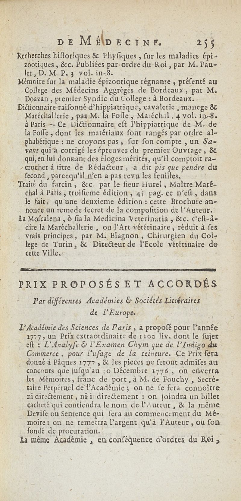 État de médecine, chirurgie et pharmacie, en Europe pour l'année 1776 présenté au Roi