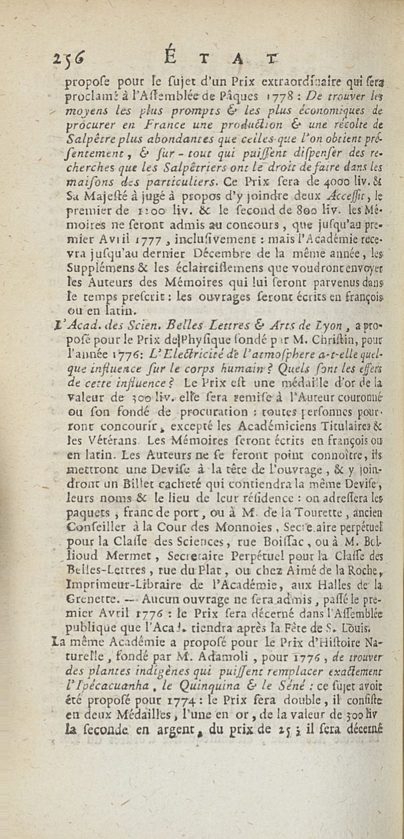 État de médecine, chirurgie et pharmacie, en Europe pour l'année 1776 présenté au Roi