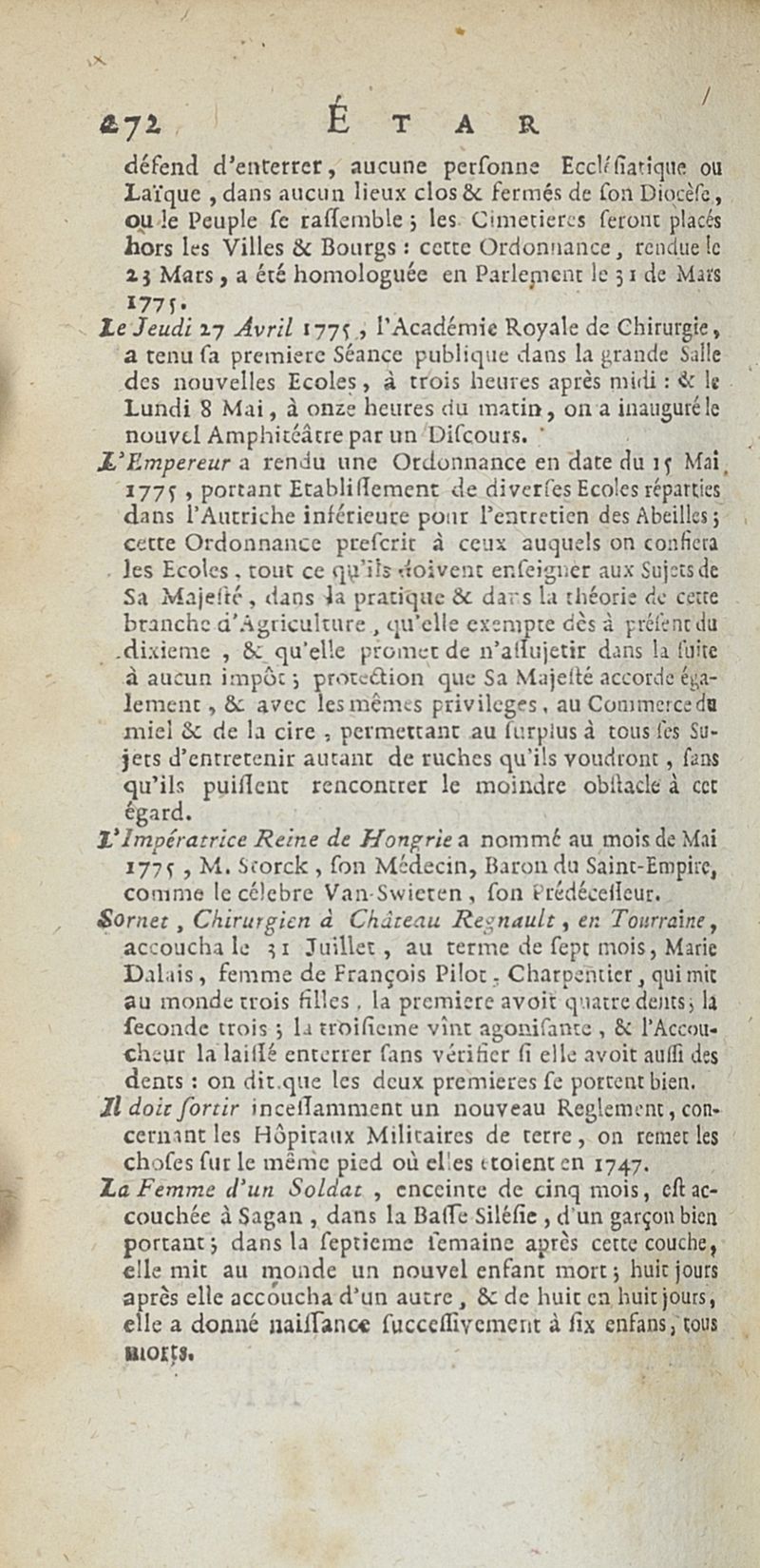 État de médecine, chirurgie et pharmacie, en Europe pour l'année 1776 présenté au Roi
