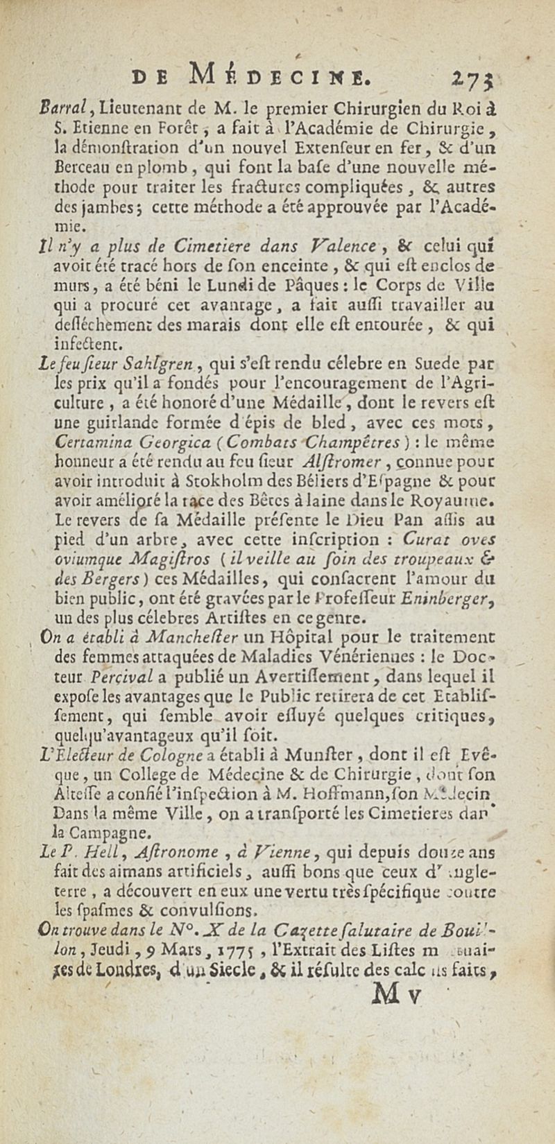 État de médecine, chirurgie et pharmacie, en Europe pour l'année 1776 présenté au Roi