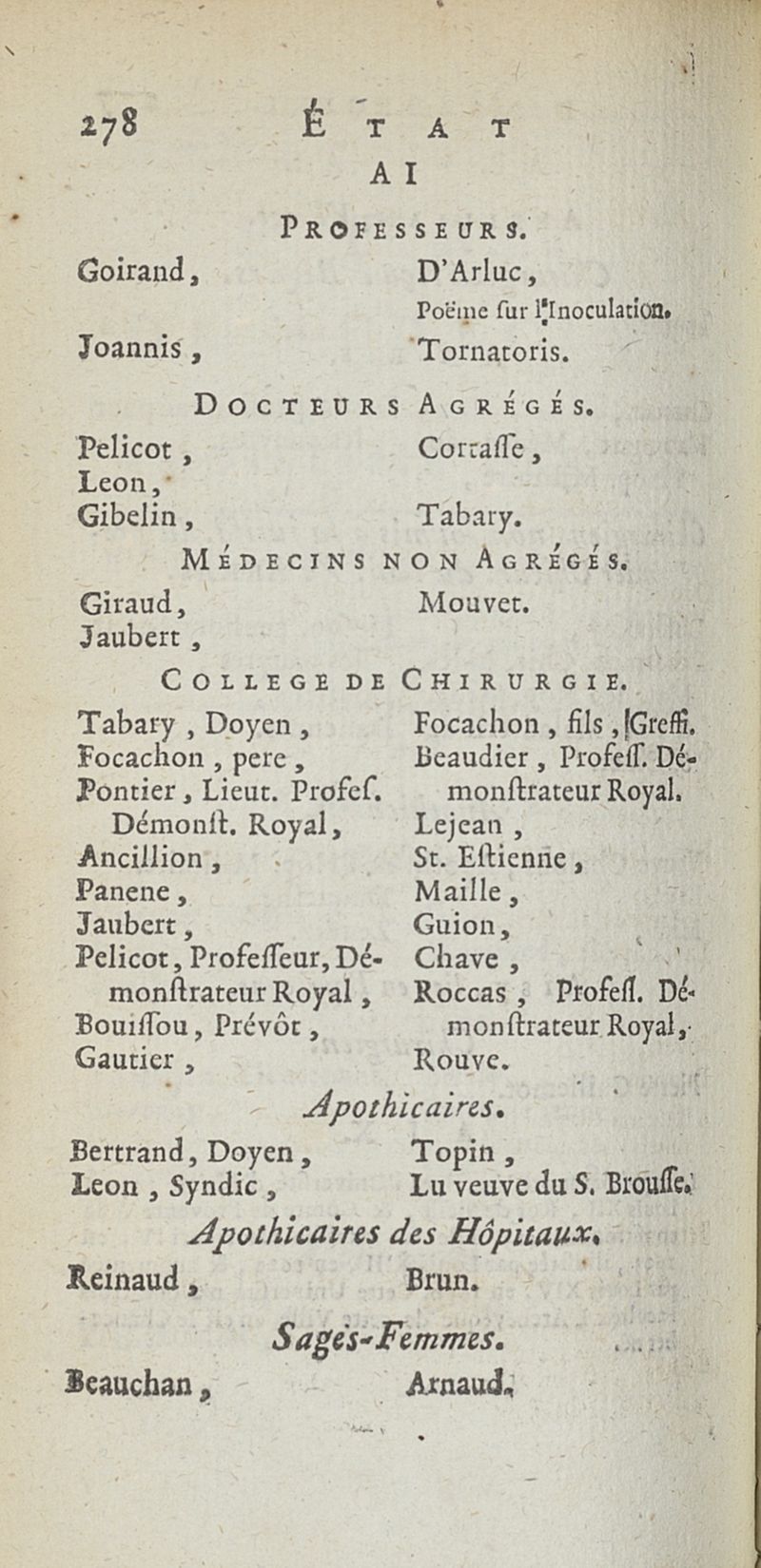 État de médecine, chirurgie et pharmacie, en Europe pour l'année 1776 présenté au Roi