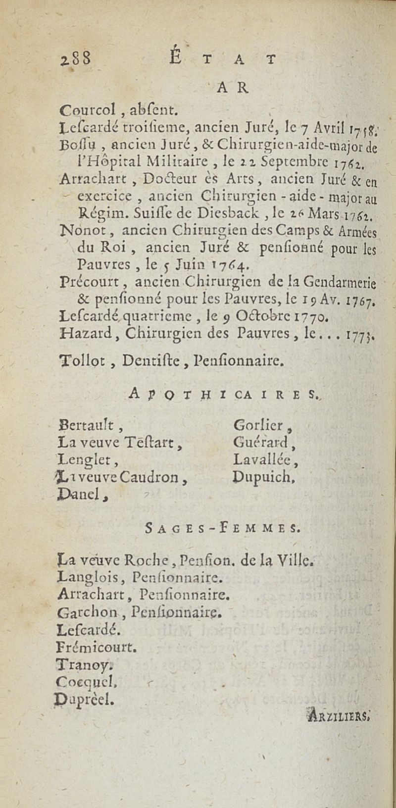 État de médecine, chirurgie et pharmacie, en Europe pour l'année 1776 présenté au Roi