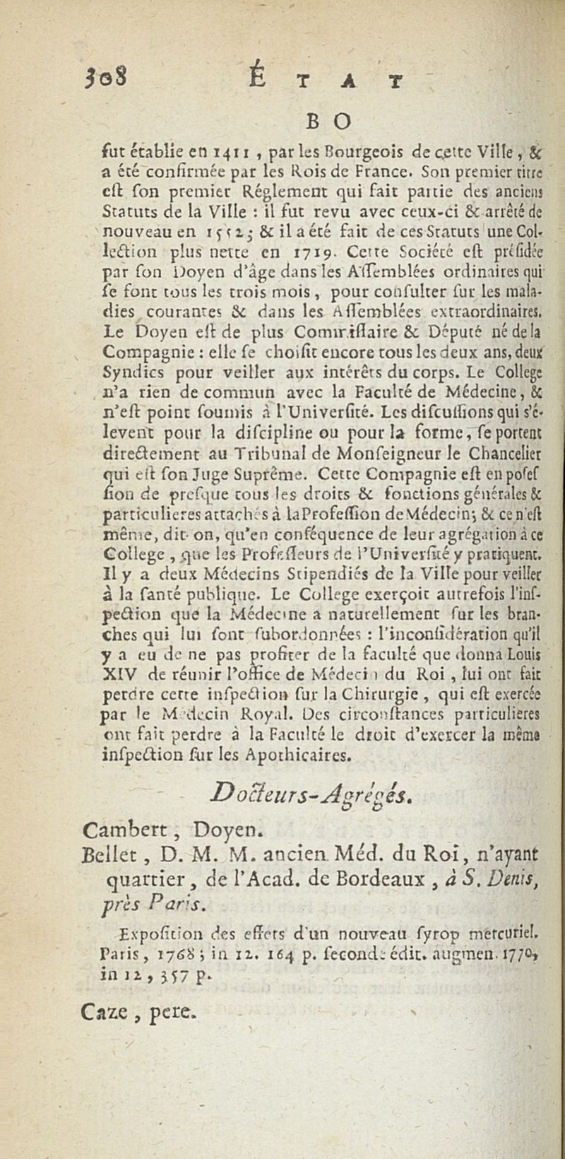 État de médecine, chirurgie et pharmacie, en Europe pour l'année 1776 présenté au Roi