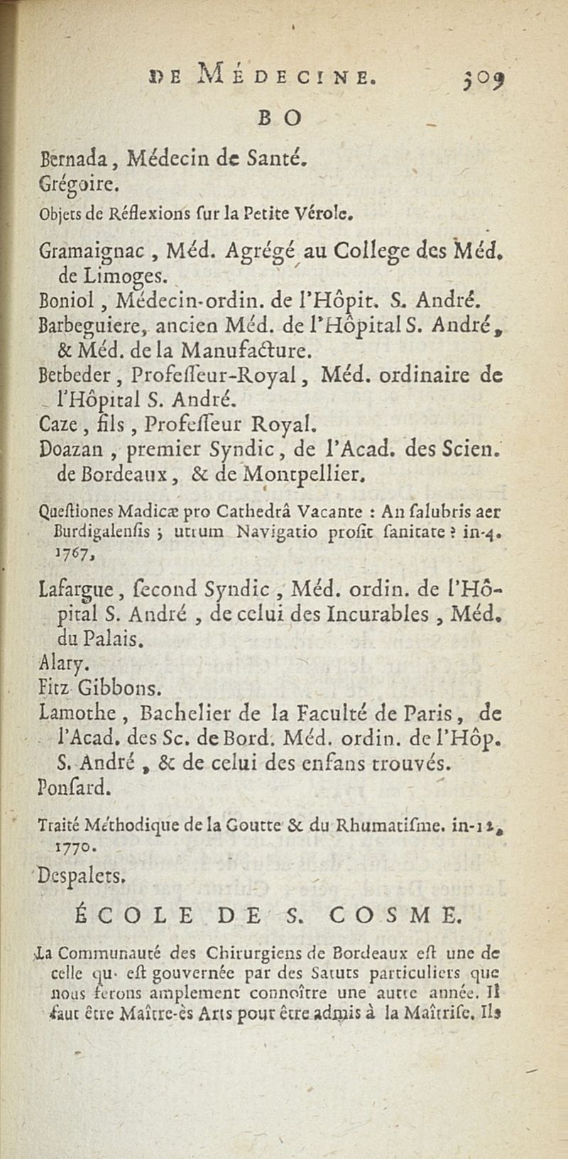 État de médecine, chirurgie et pharmacie, en Europe pour l'année 1776 présenté au Roi