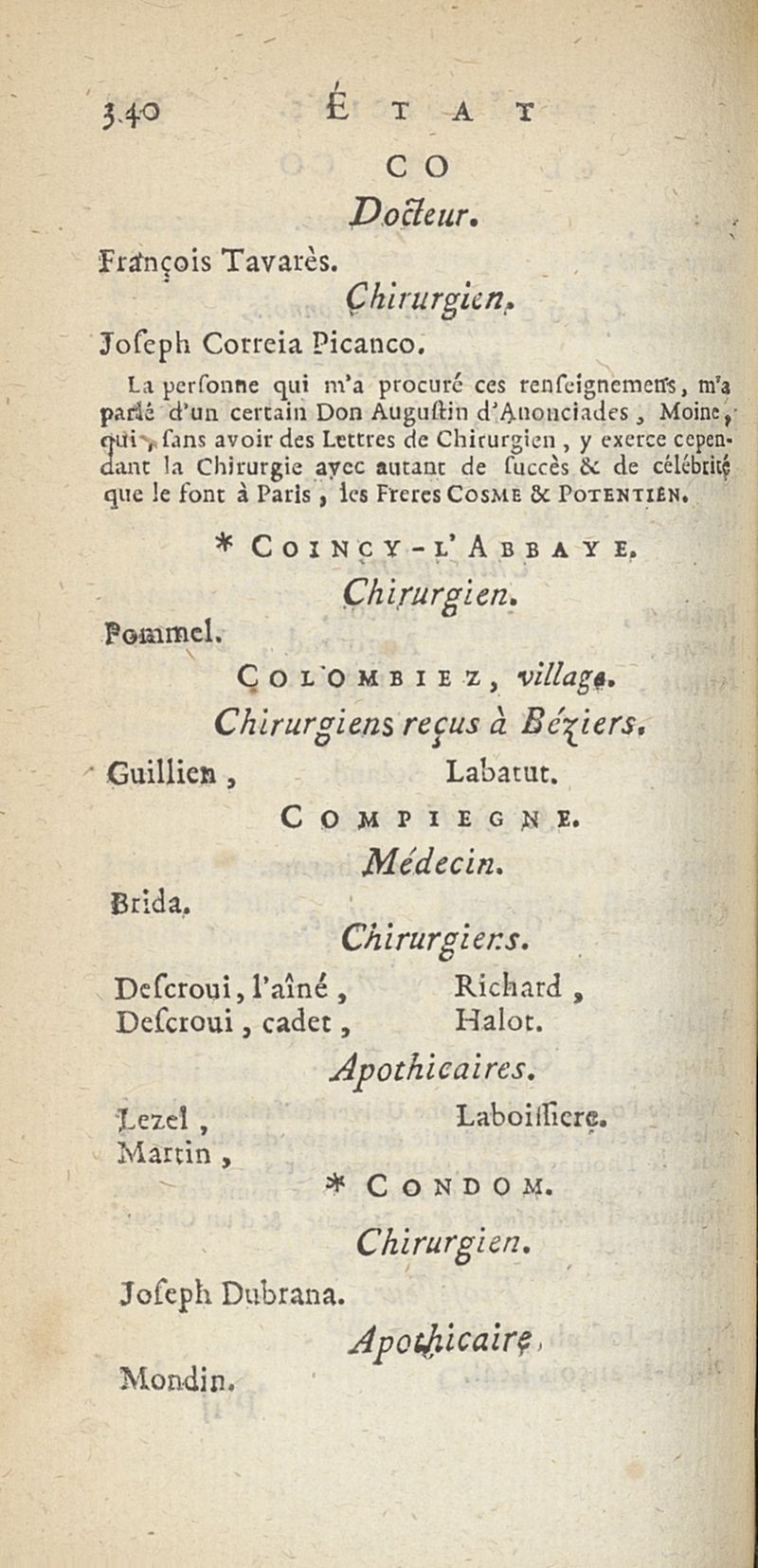 État de médecine, chirurgie et pharmacie, en Europe pour l'année 1776 présenté au Roi