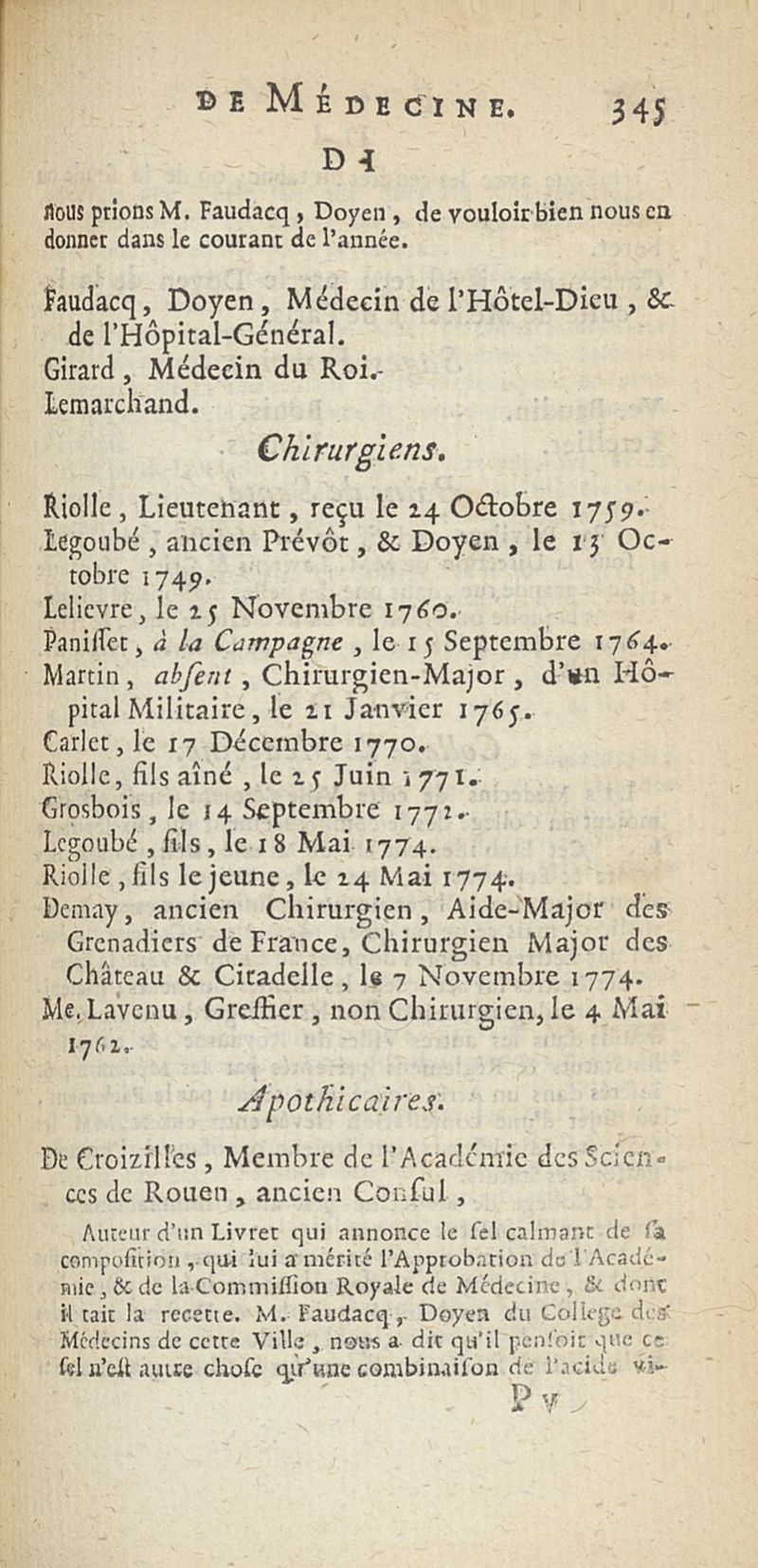 État de médecine, chirurgie et pharmacie, en Europe pour l'année 1776 présenté au Roi