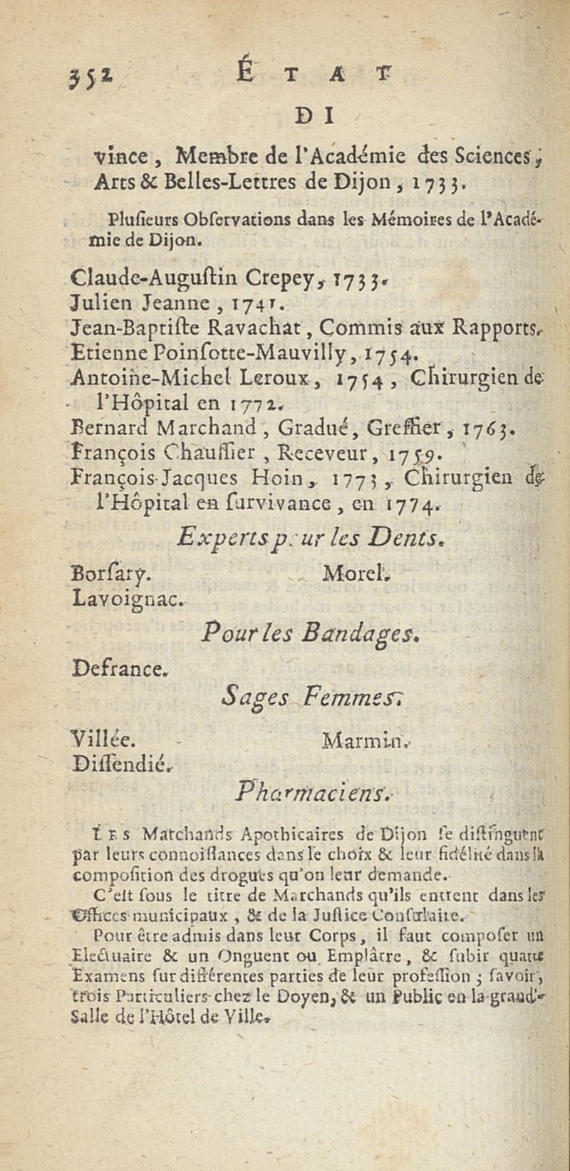 État de médecine, chirurgie et pharmacie, en Europe pour l'année 1776 présenté au Roi