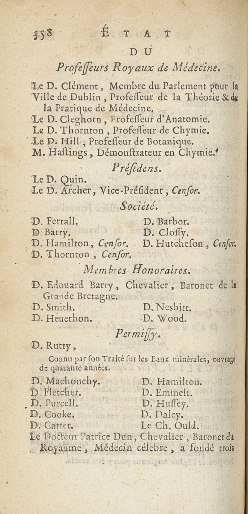 État de médecine, chirurgie et pharmacie, en Europe pour l'année 1776 présenté au Roi