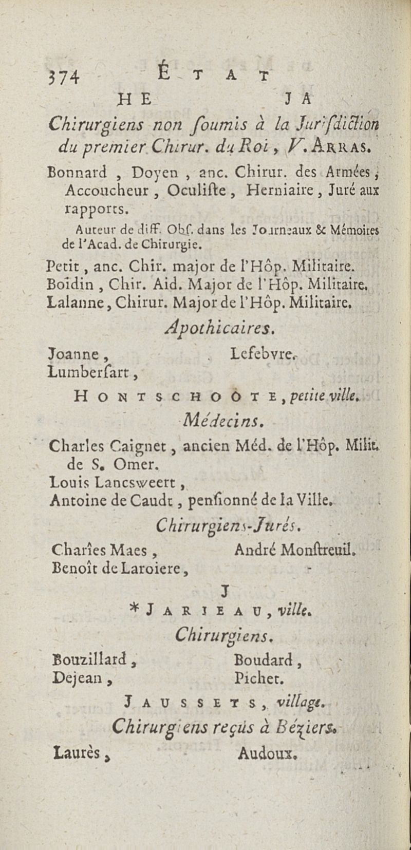 État de médecine, chirurgie et pharmacie, en Europe pour l'année 1776 présenté au Roi