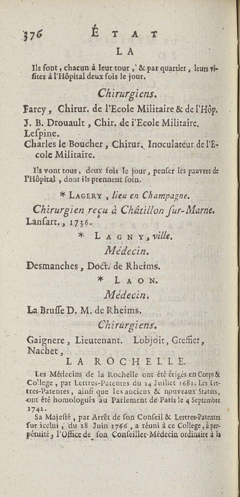 État de médecine, chirurgie et pharmacie, en Europe pour l'année 1776 présenté au Roi