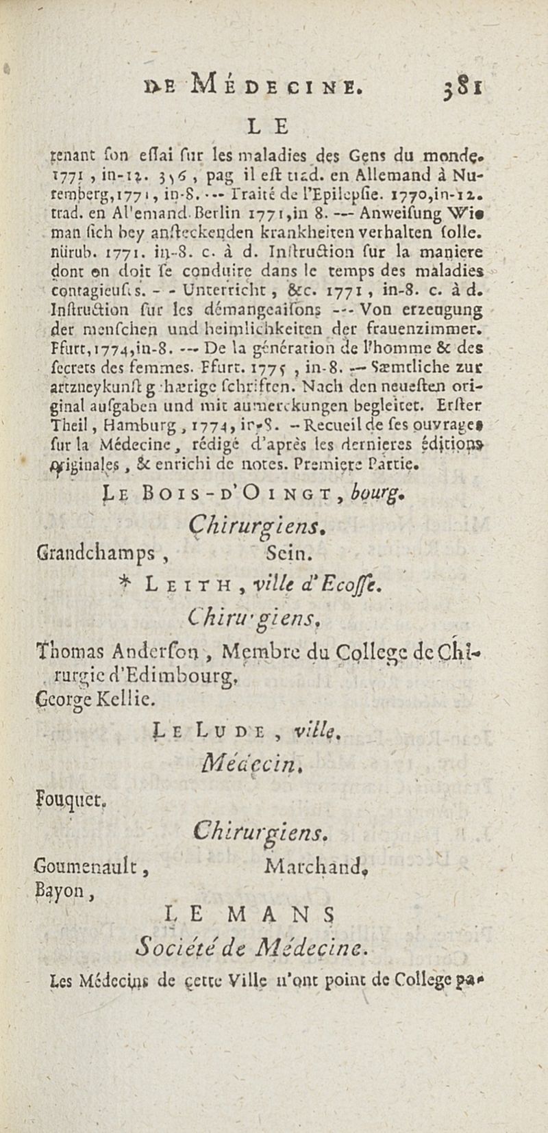 État de médecine, chirurgie et pharmacie, en Europe pour l'année 1776 présenté au Roi