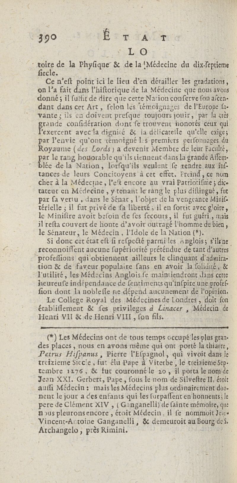 État de médecine, chirurgie et pharmacie, en Europe pour l'année 1776 présenté au Roi