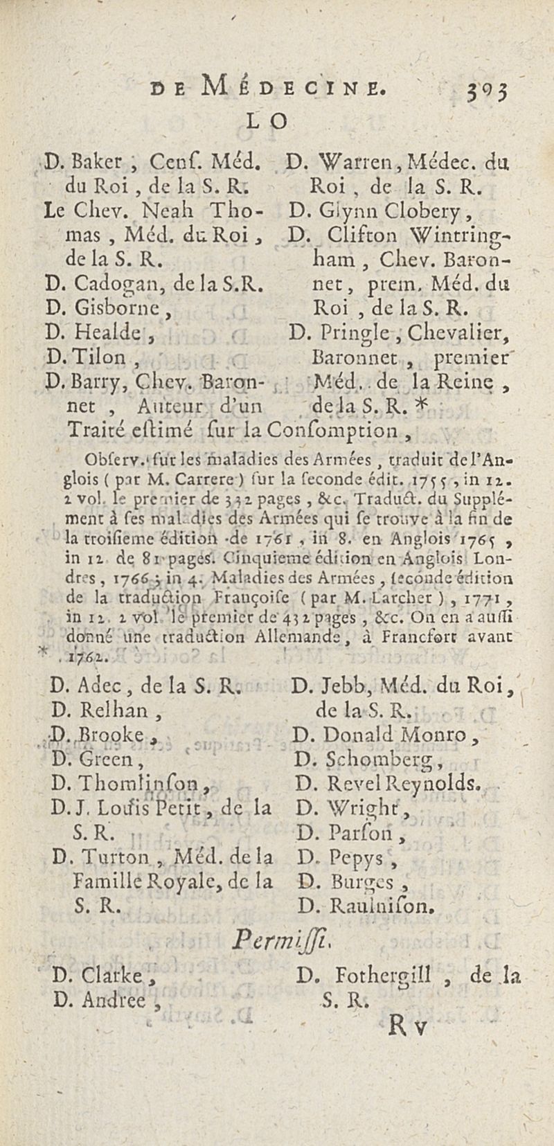 État de médecine, chirurgie et pharmacie, en Europe pour l'année 1776 présenté au Roi