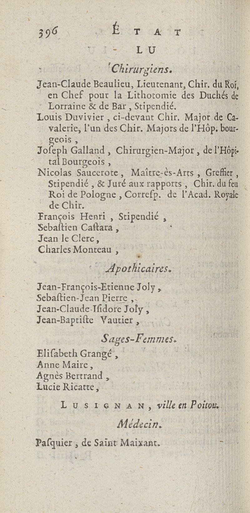 État de médecine, chirurgie et pharmacie, en Europe pour l'année 1776 présenté au Roi