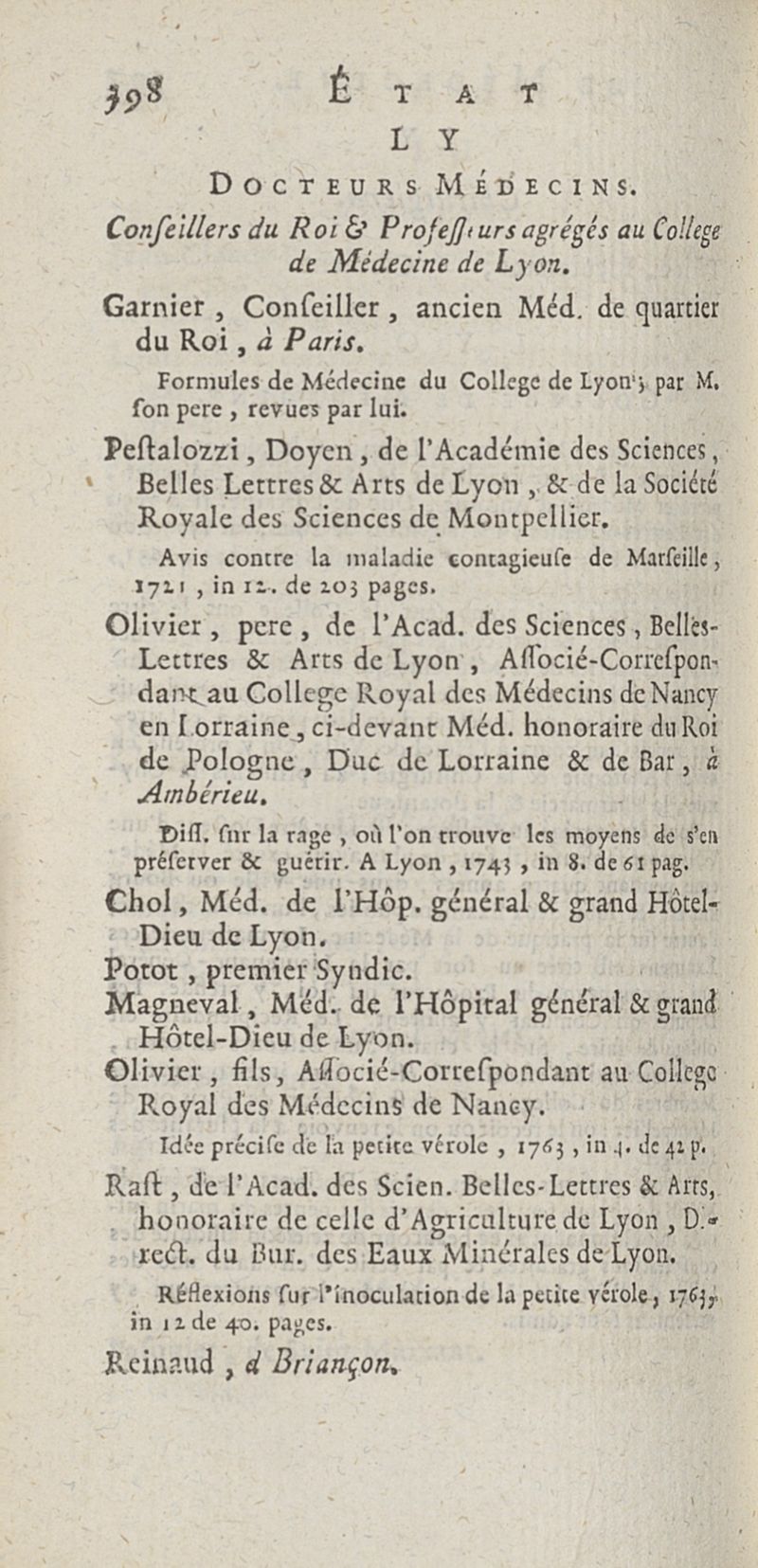 État de médecine, chirurgie et pharmacie, en Europe pour l'année 1776 présenté au Roi