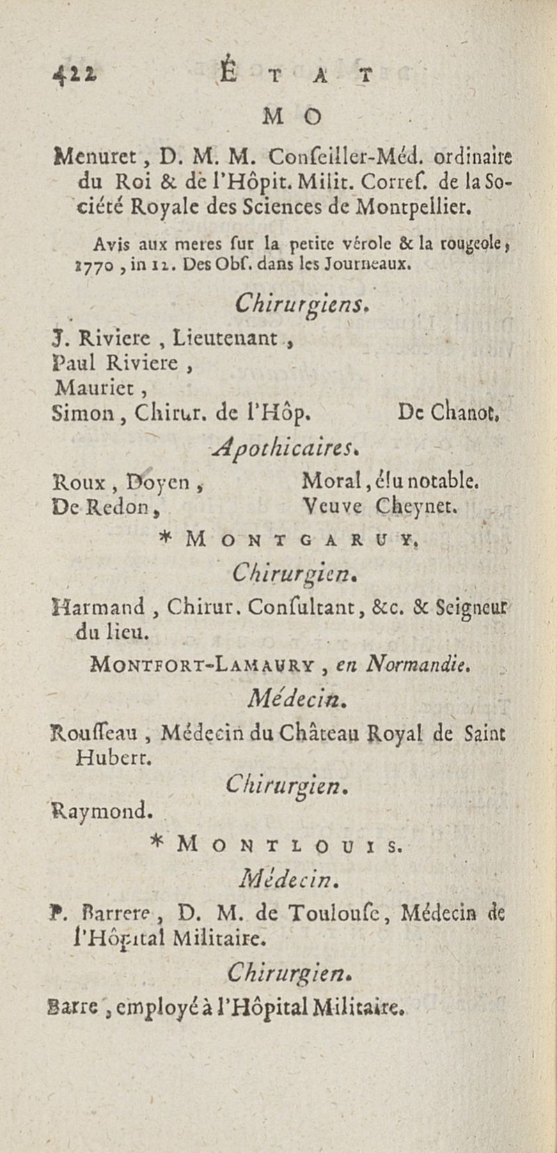 État de médecine, chirurgie et pharmacie, en Europe pour l'année 1776 présenté au Roi