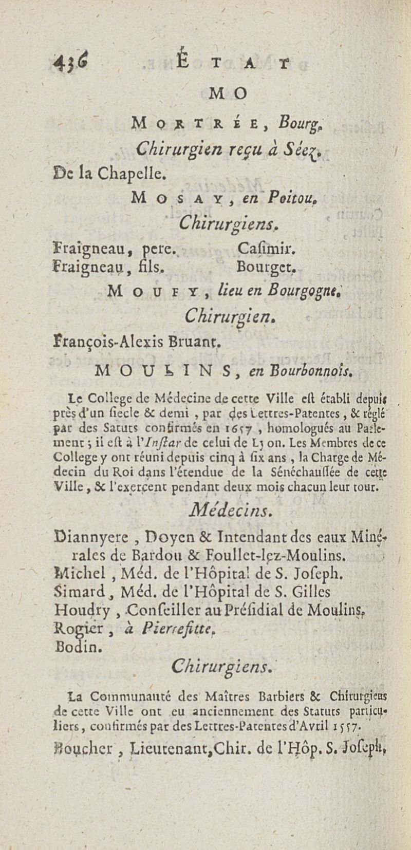 État de médecine, chirurgie et pharmacie, en Europe pour l'année 1776 présenté au Roi