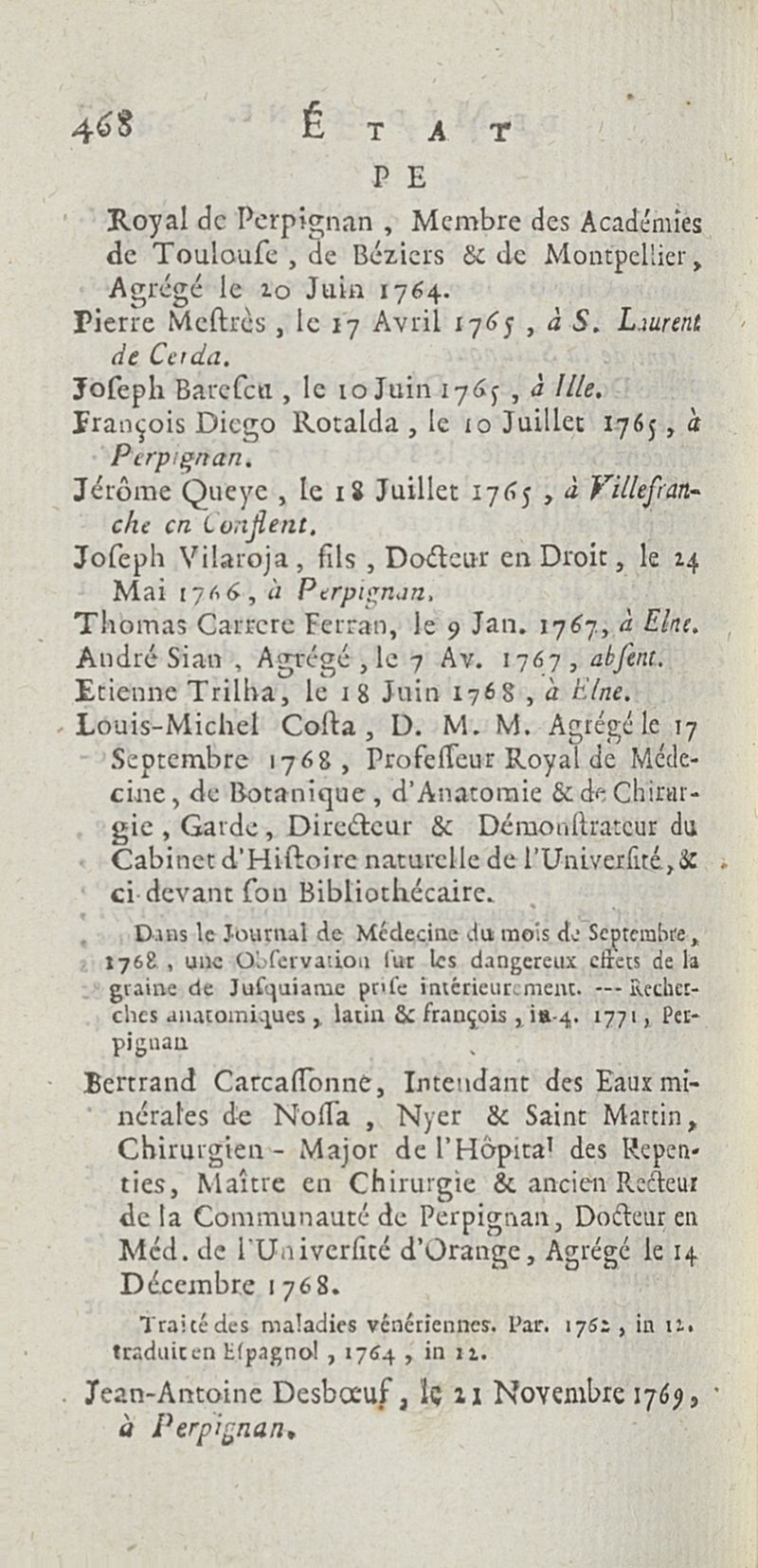 État de médecine, chirurgie et pharmacie, en Europe pour l'année 1776 présenté au Roi