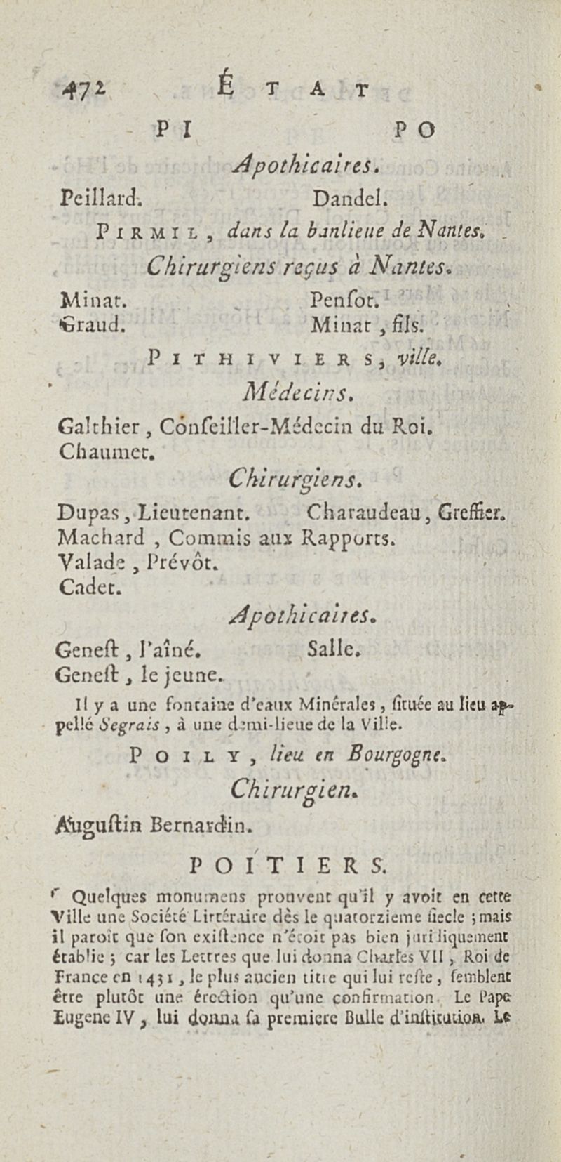 État de médecine, chirurgie et pharmacie, en Europe pour l'année 1776 présenté au Roi
