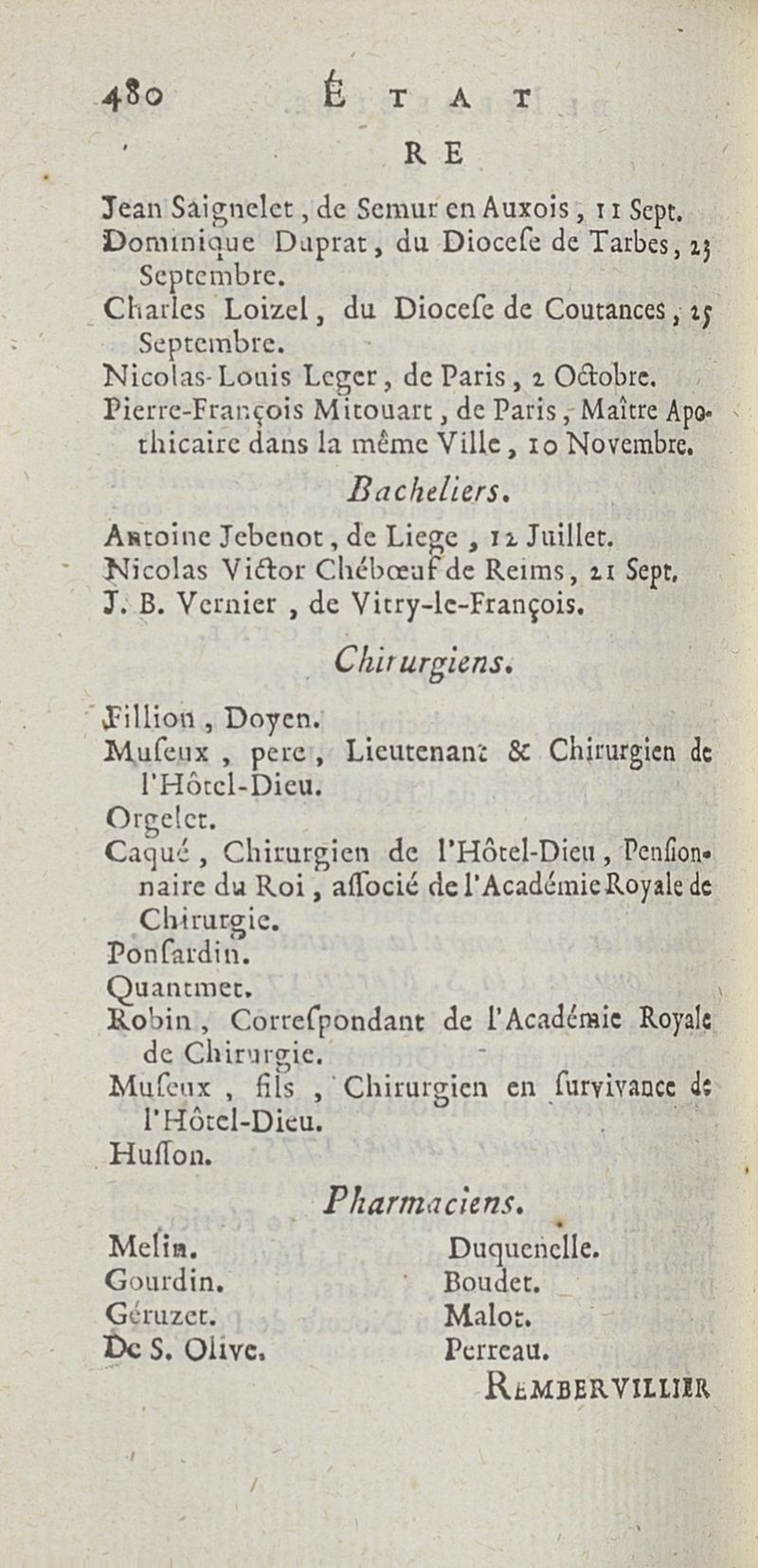État de médecine, chirurgie et pharmacie, en Europe pour l'année 1776 présenté au Roi