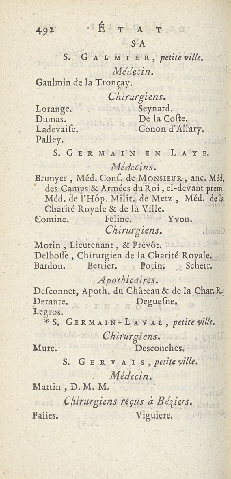 État de médecine, chirurgie et pharmacie, en Europe pour l'année 1776 présenté au Roi