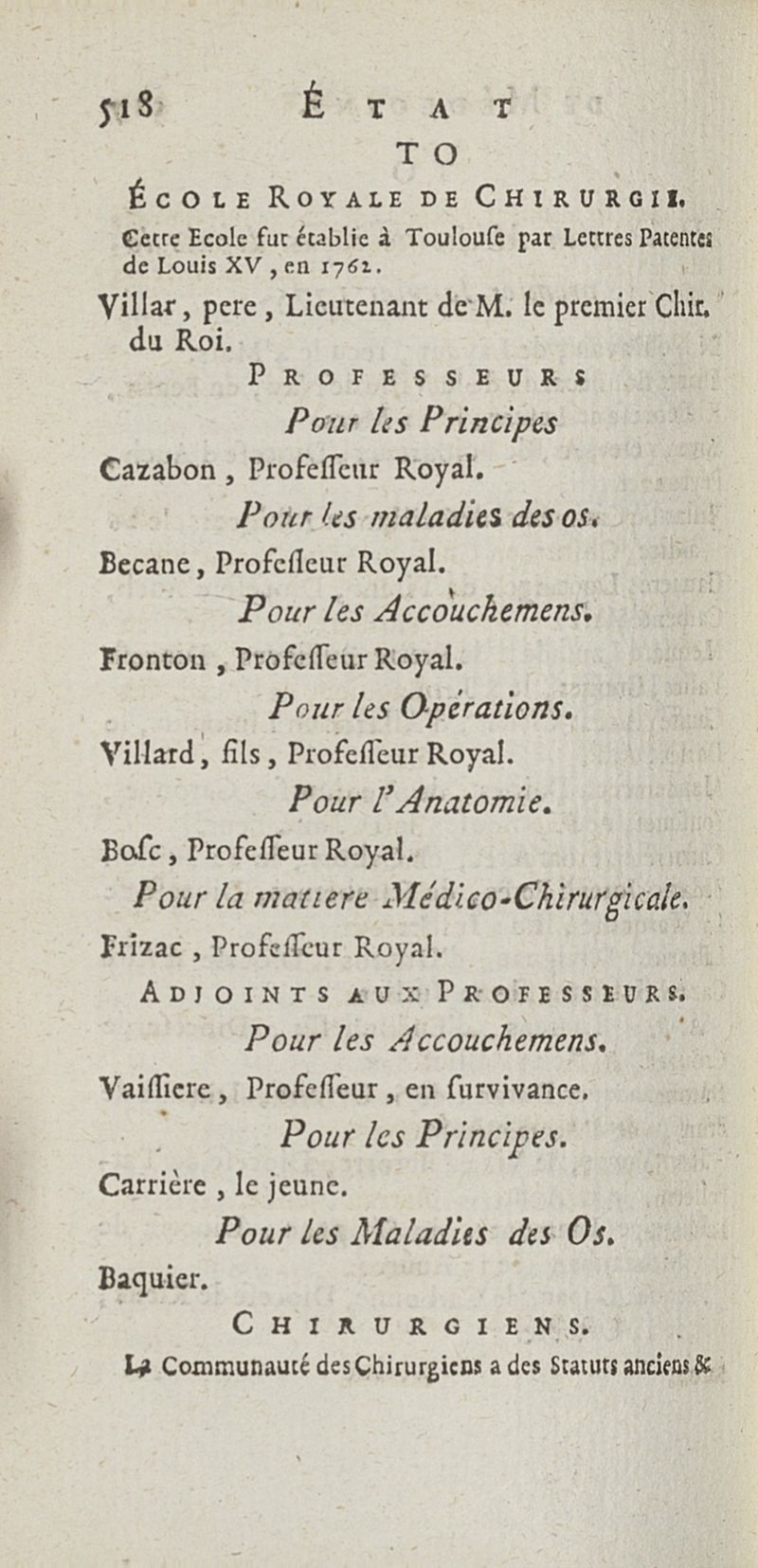 État de médecine, chirurgie et pharmacie, en Europe pour l'année 1776 présenté au Roi