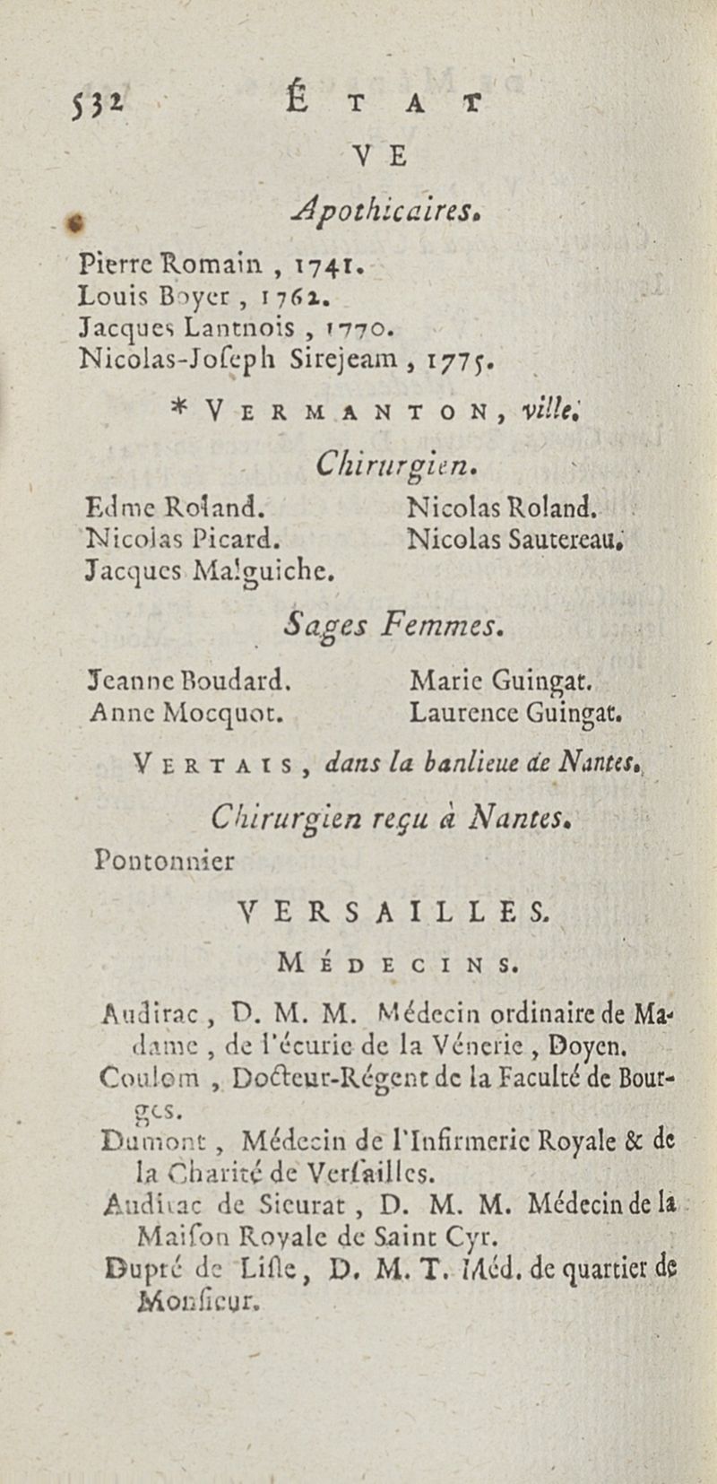 État de médecine, chirurgie et pharmacie, en Europe pour l'année 1776 présenté au Roi