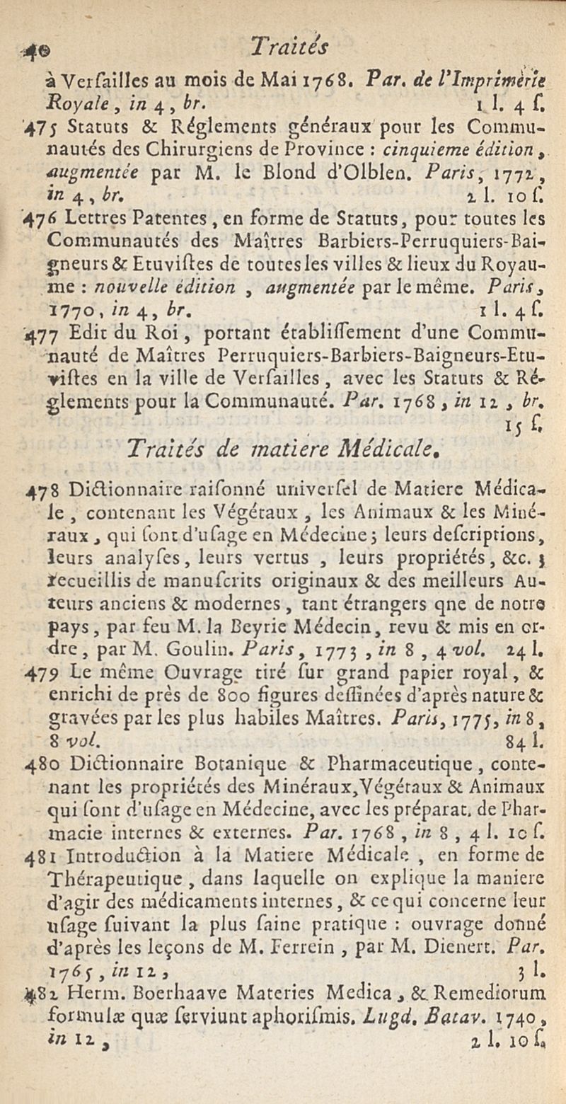 État de médecine, chirurgie et pharmacie, en Europe pour l'année 1776 présenté au Roi