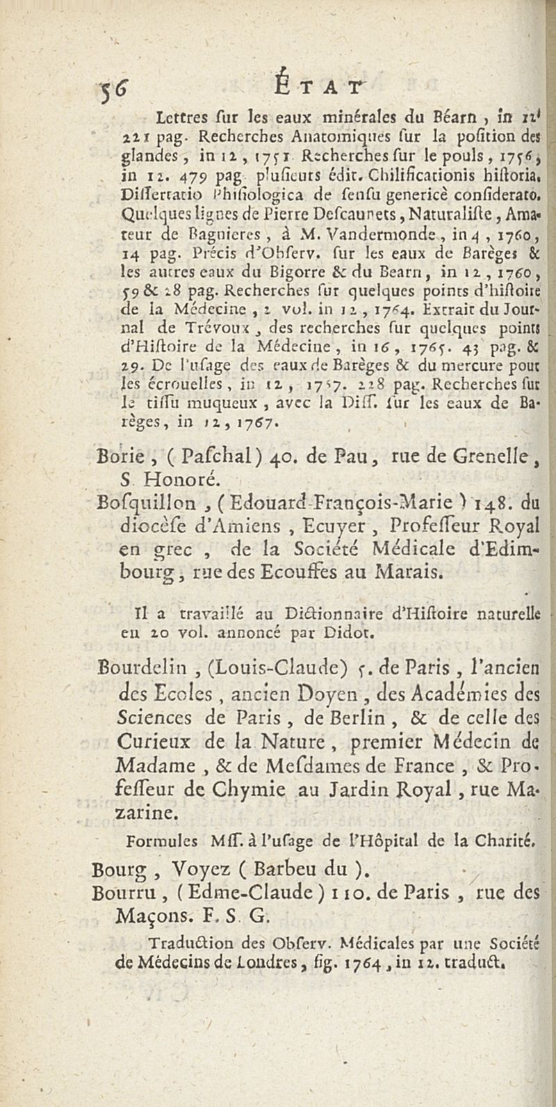 État de médecine, chirurgie et pharmacie, en Europe pour l'année 1776 présenté au Roi