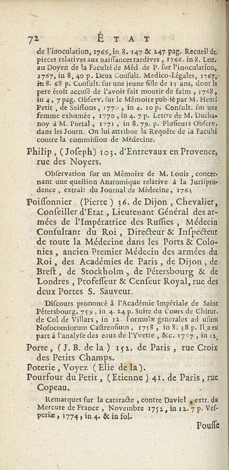 État de médecine, chirurgie et pharmacie, en Europe pour l'année 1776 présenté au Roi