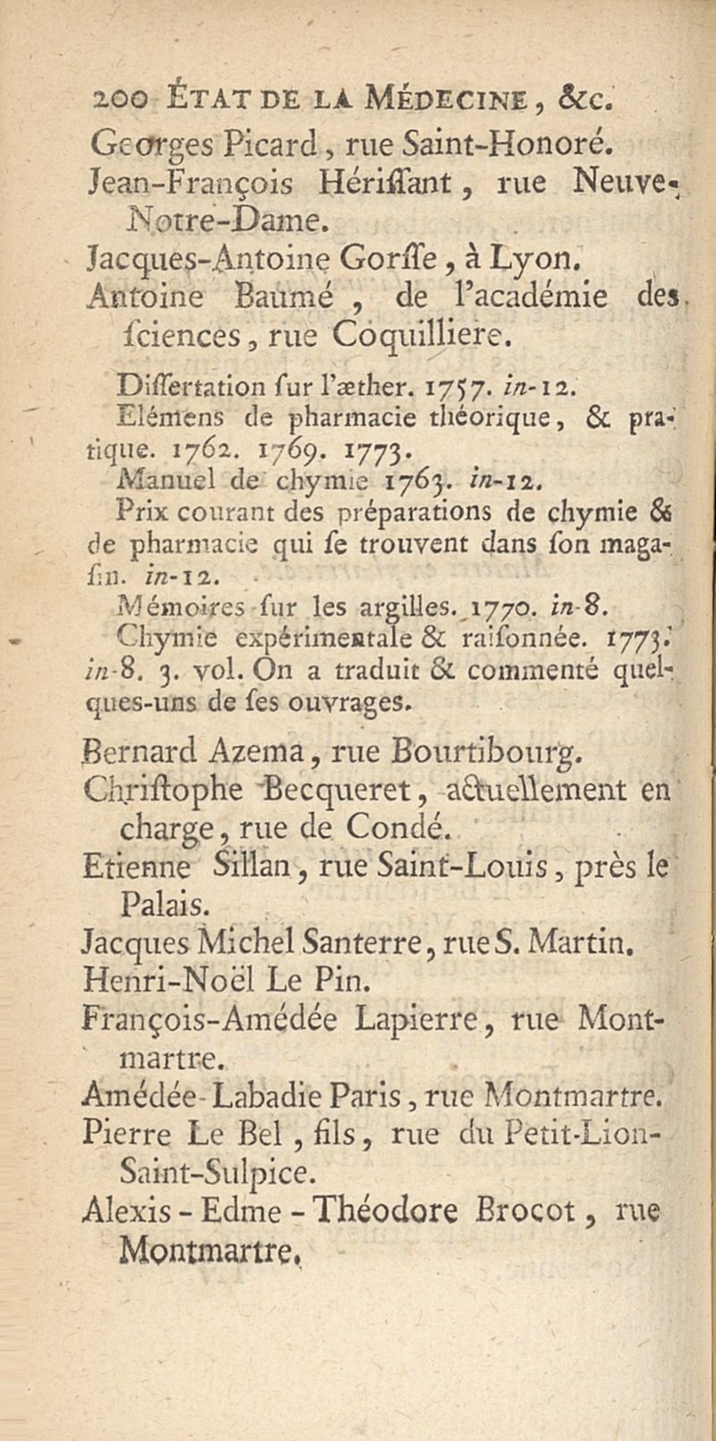 Etat de la médecine, chirurgie et pharmacie, en Europe et principalement en France pour l'année 1777 dédié à Mgr le comte d'Artois