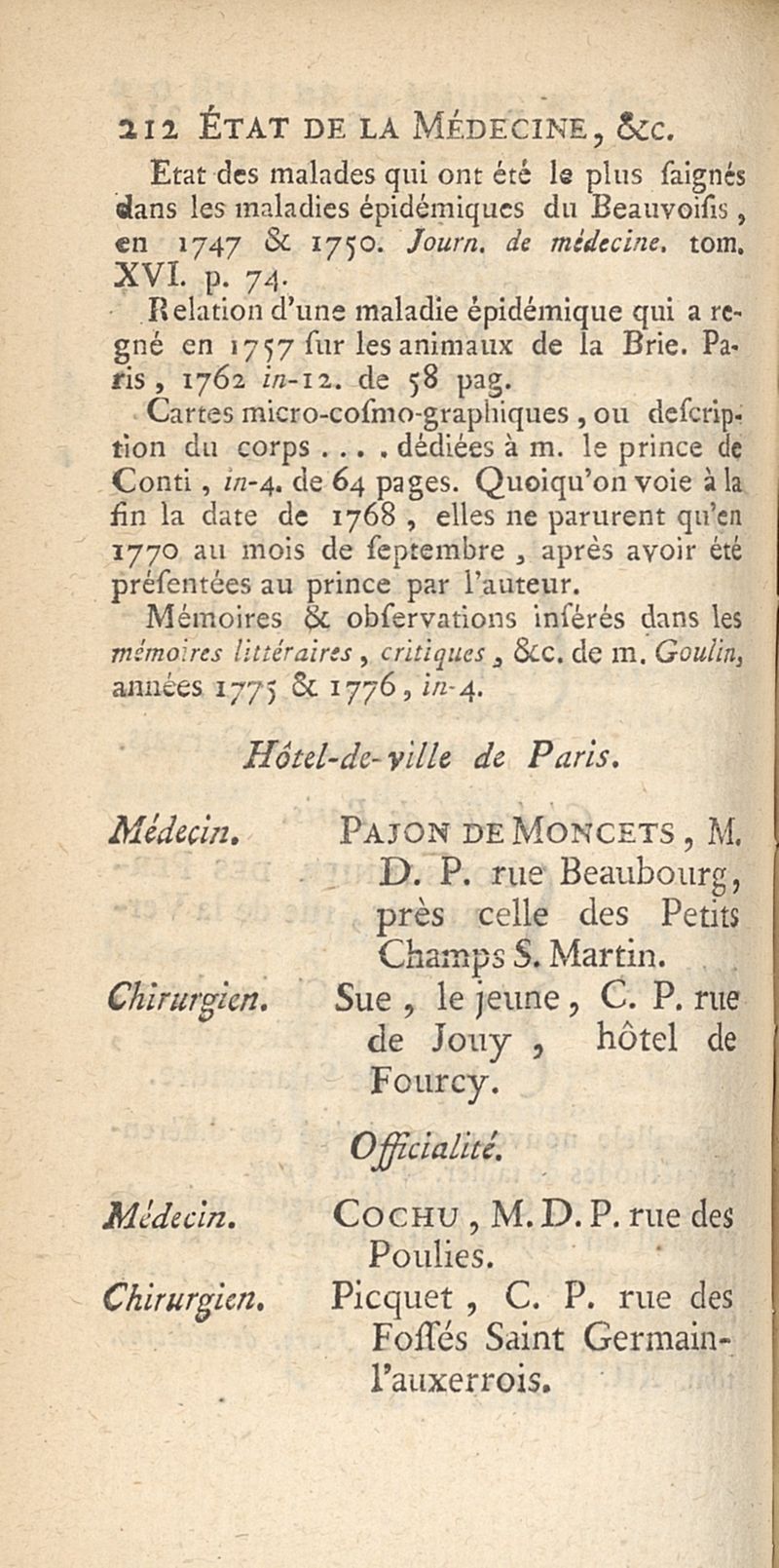 Etat de la médecine, chirurgie et pharmacie, en Europe et principalement en France pour l'année 1777 dédié à Mgr le comte d'Artois
