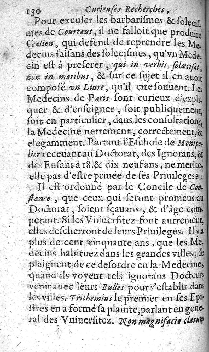 Curieuses recherches sur les escholes en médecine de Paris et de Montpellier, nécessaires d'estres sceuës pour la conservation de la vie, par un ancien docteur en médecine de la faculté de Paris