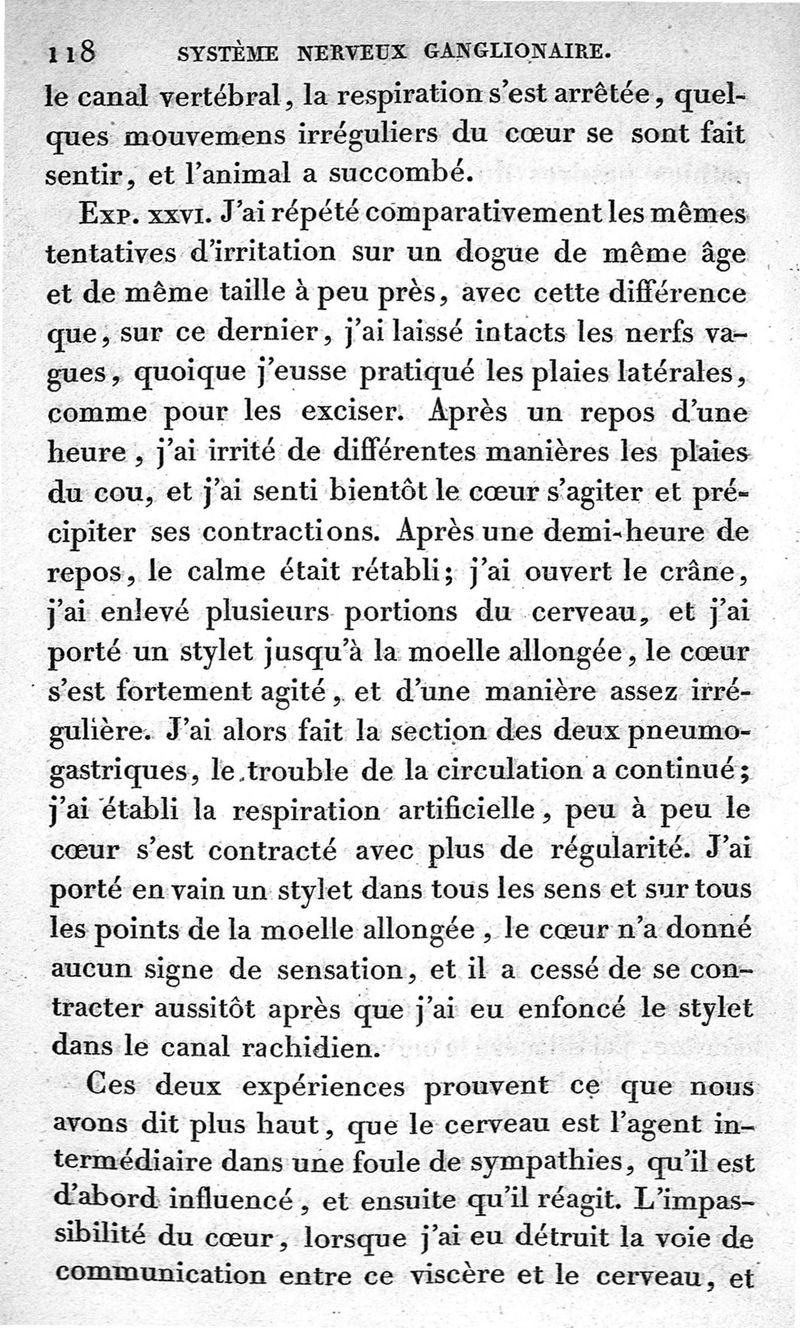 Recherches expérimentales sur les fonctions du système nerveux ganglionnaire