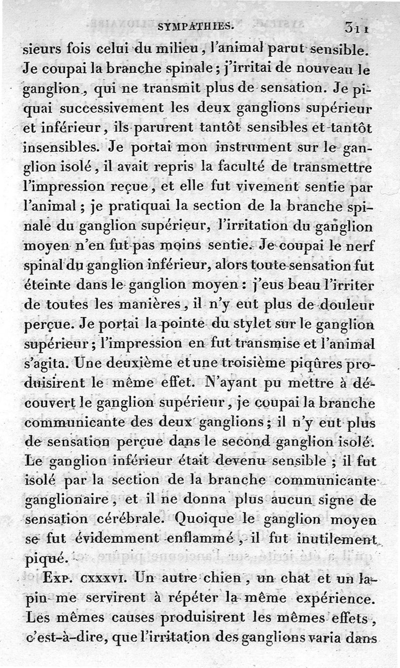 Recherches expérimentales sur les fonctions du système nerveux ganglionnaire