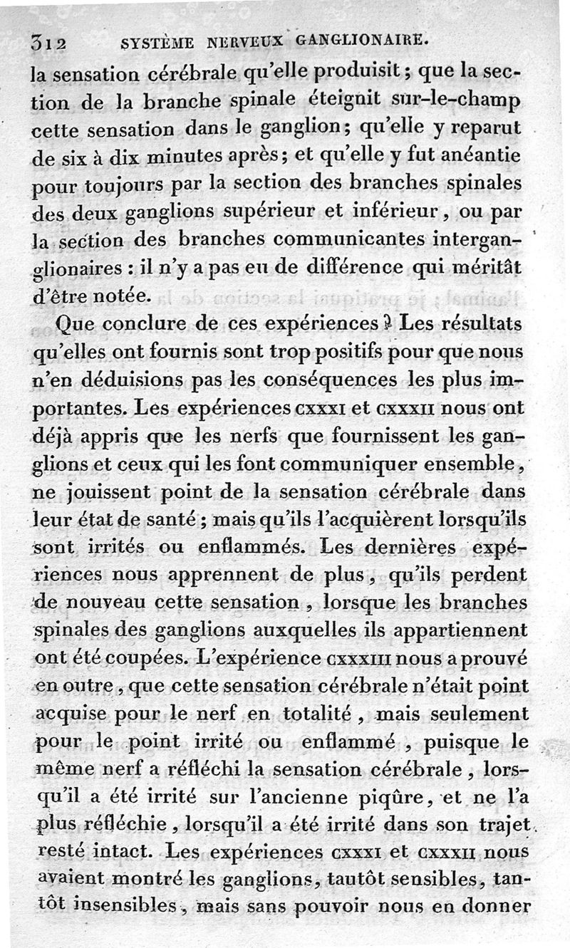 Recherches expérimentales sur les fonctions du système nerveux ganglionnaire