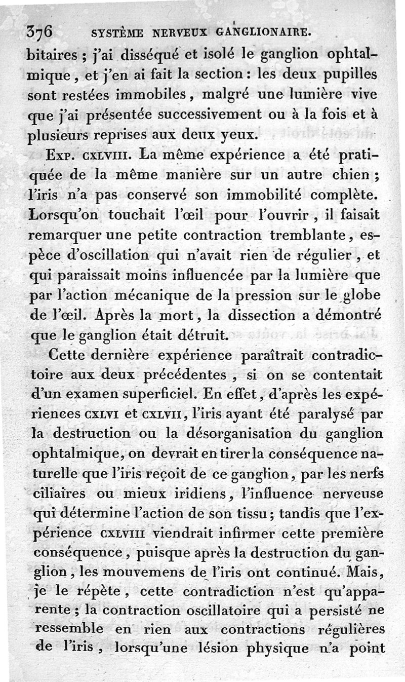 Recherches expérimentales sur les fonctions du système nerveux ganglionnaire